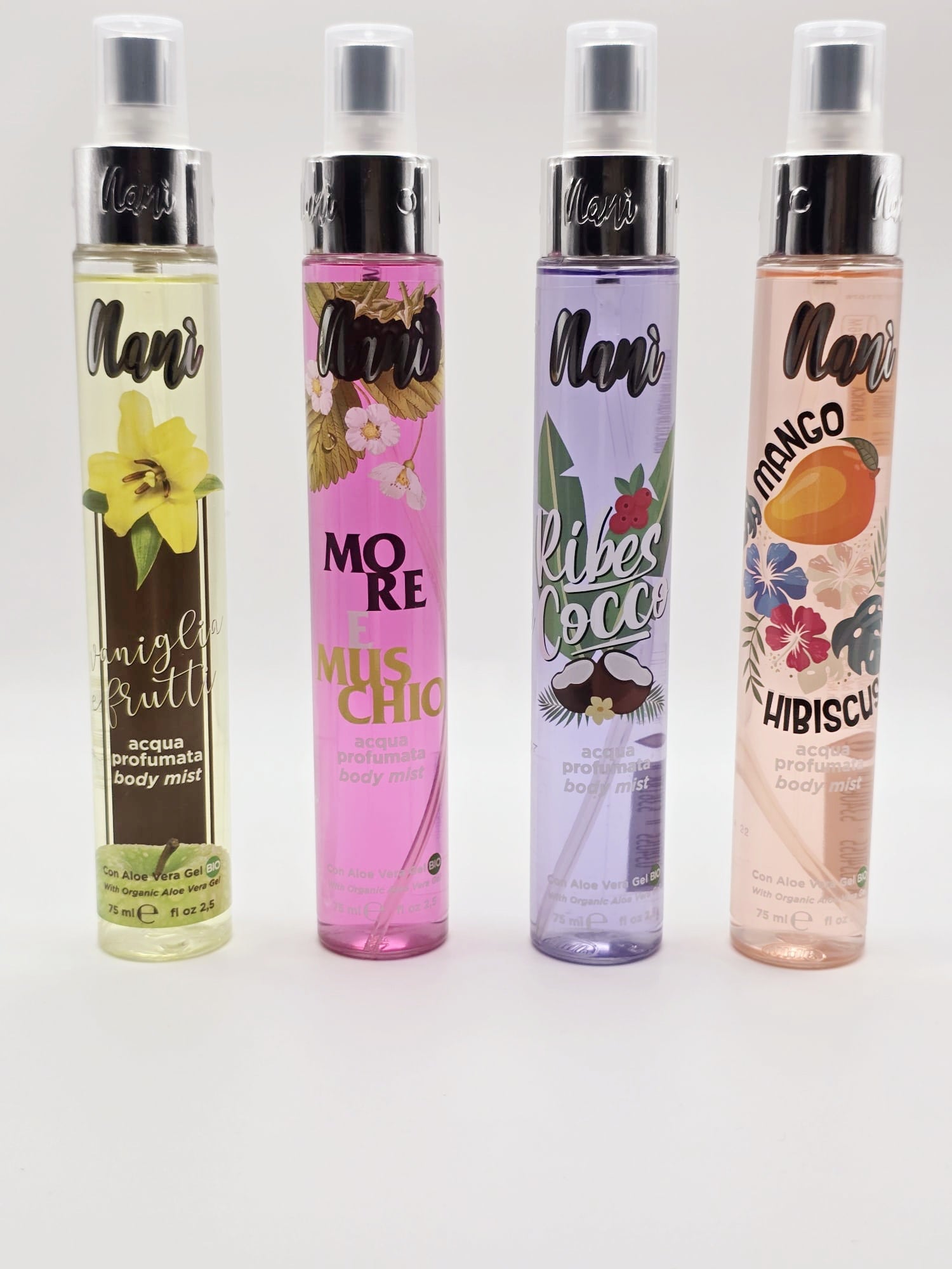 Le acque profumate di Nanì sono delicate, leggere e rinfrescanti; non irritano la pelle, adatte per tutto il corpo.