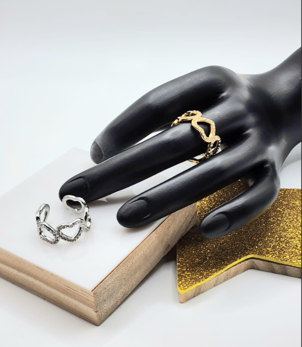 Anello con design a cuori impreziositi da brillantini luminosi.