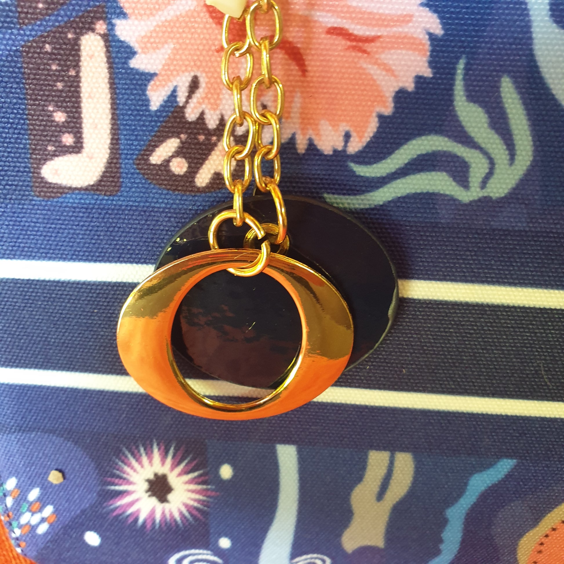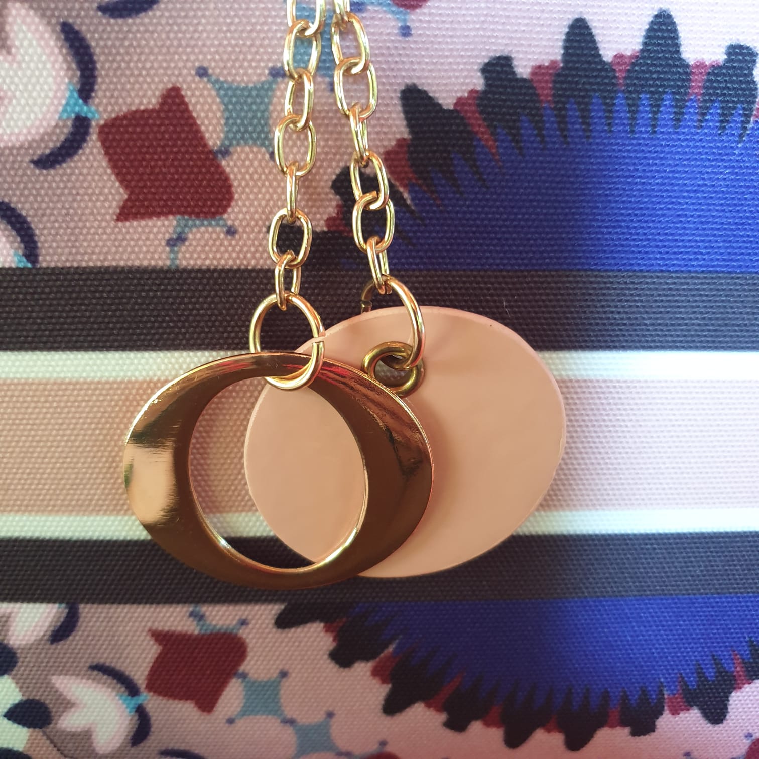 Borsa compatta con manici,Β dalle stampe vivaci, completa di cinghia regolabile per il trasporto a spalla o a tracolla.
