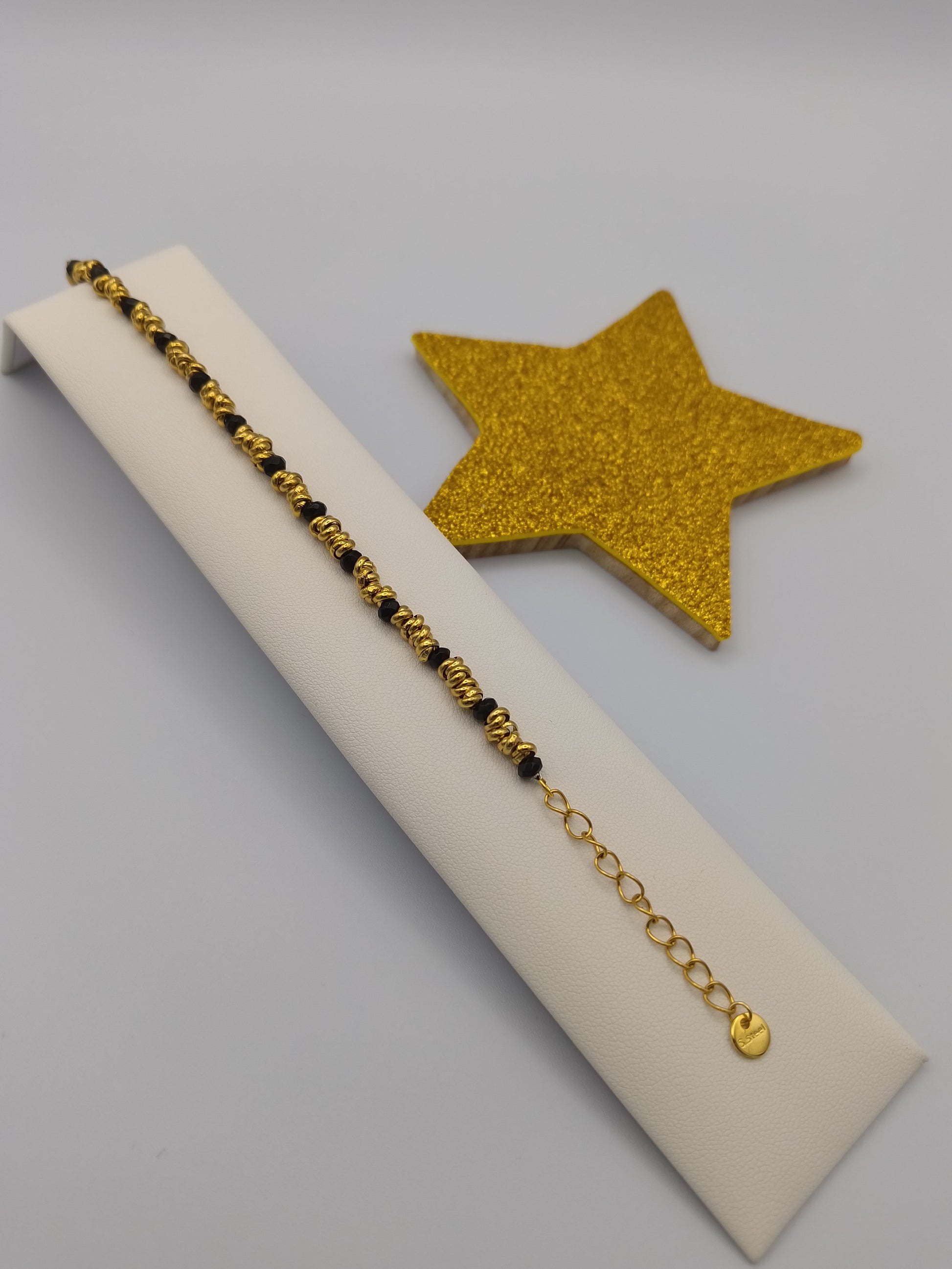 Bracciale con perline e tocchi argentati o dorati, spessore 4 mm.