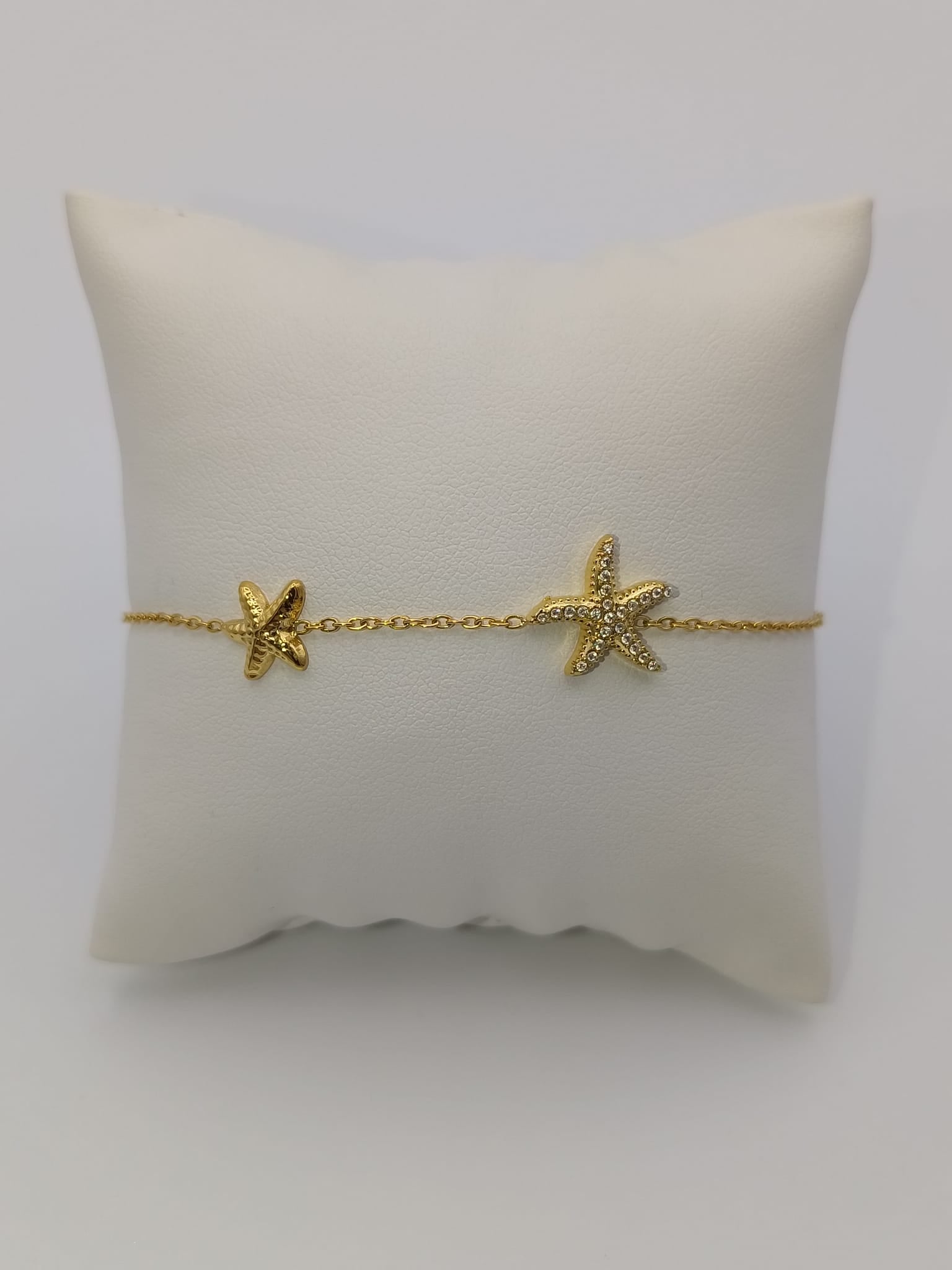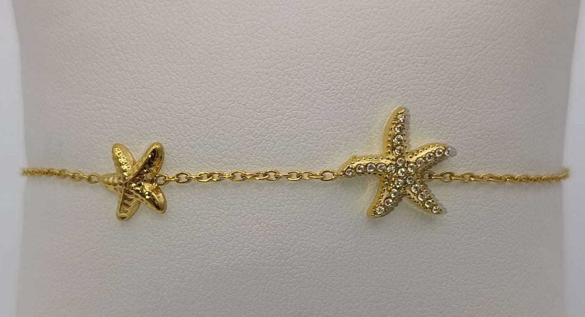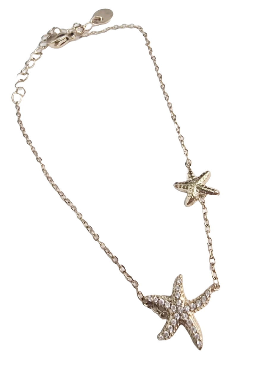 Cavigliera con doppio charm : due stelle marine di diversa misura 7mm e 12mm con strass.