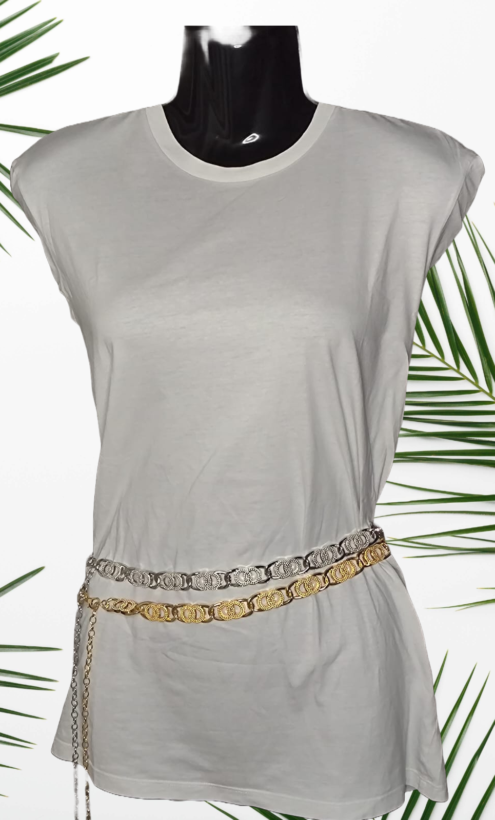 Cintura gioiello in metallo a piccoli cerchi martellatiΒ