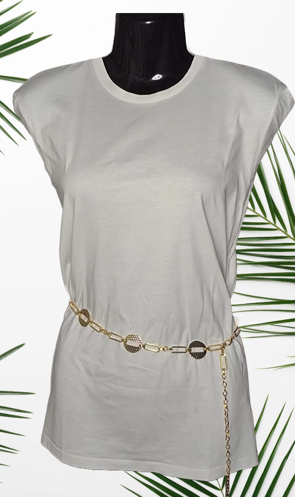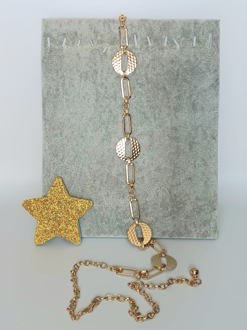 Cintura gioiello in metallo dorato a forma di cerchi martellati per dare piΓΉ luce alternati a maglie di catena ovaleΒ Β