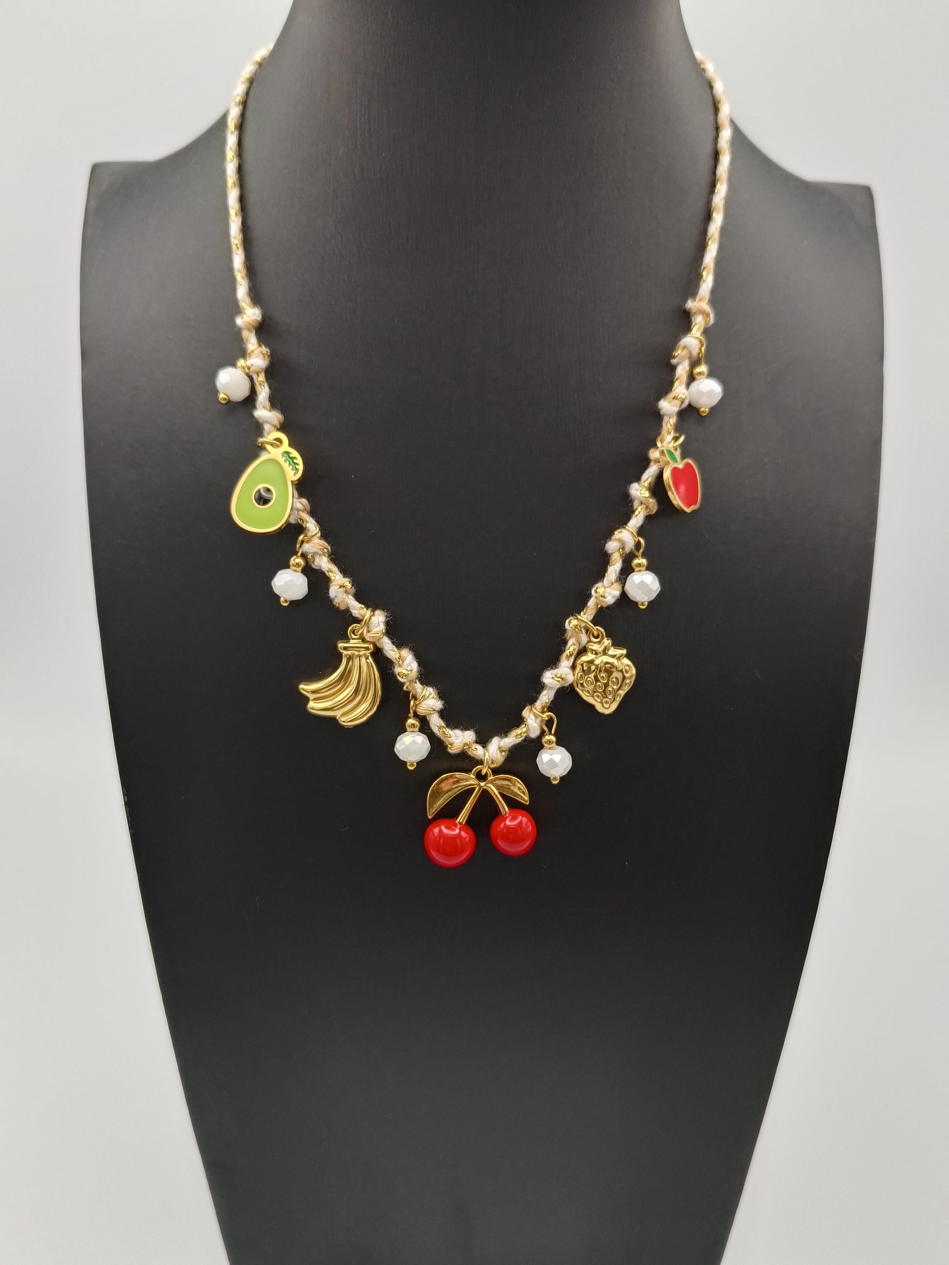 Collana chocker a cordina intrecciataΒ con charms in acciaio smaltato e perline.