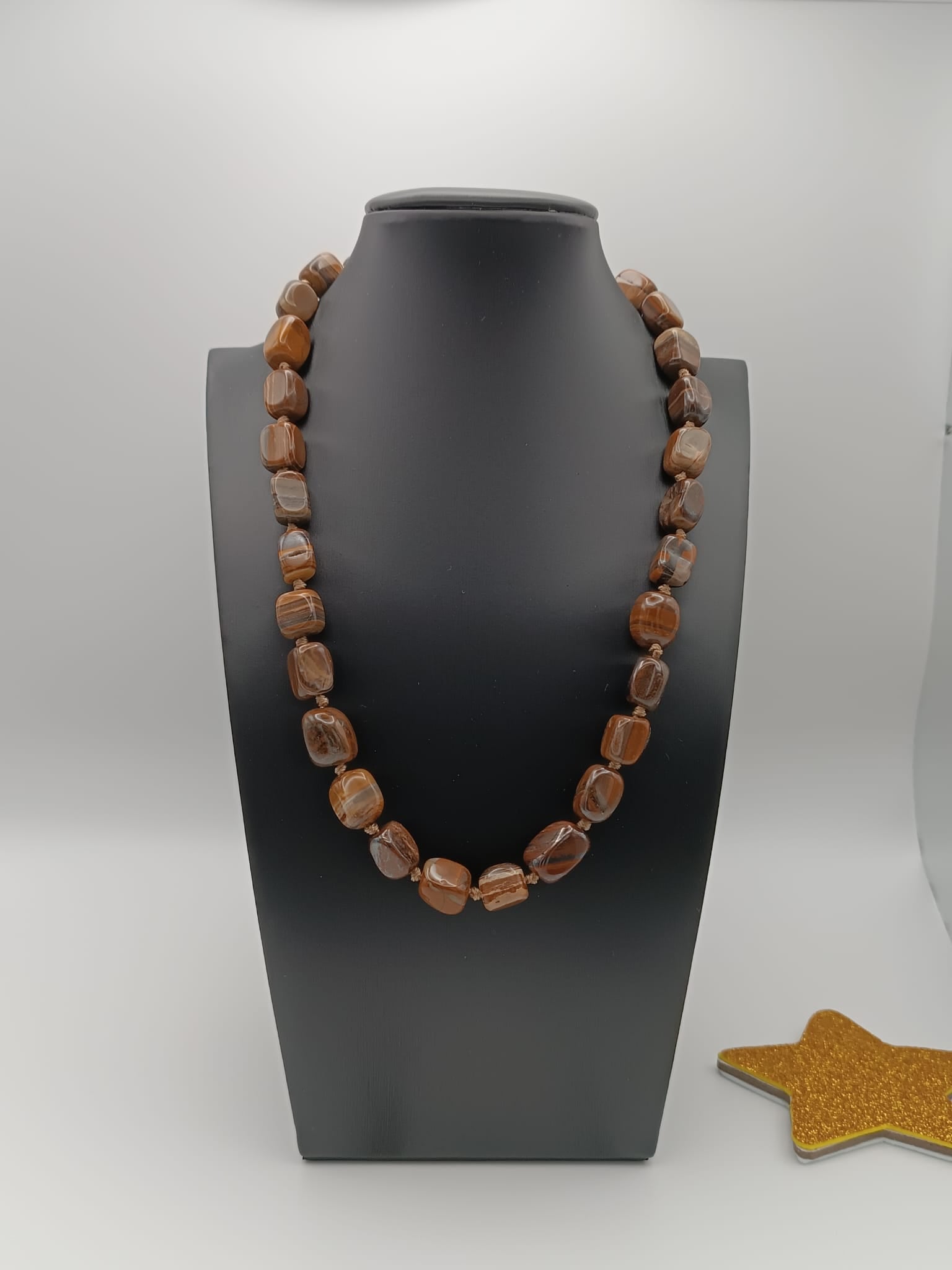 Con eleganti pietre tondeggianti e squadrate nella tonalitΓ del marrone e beige, con venature naturali. Il suo stile sobrio ma raffinato la rende perfetta per look casual chic o per un tocco etnico discreto.