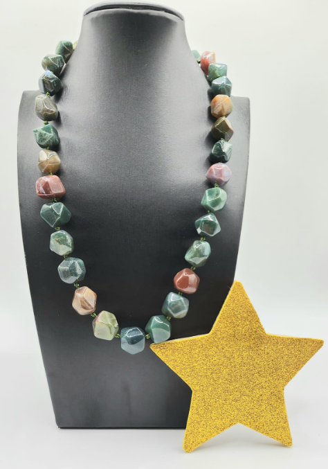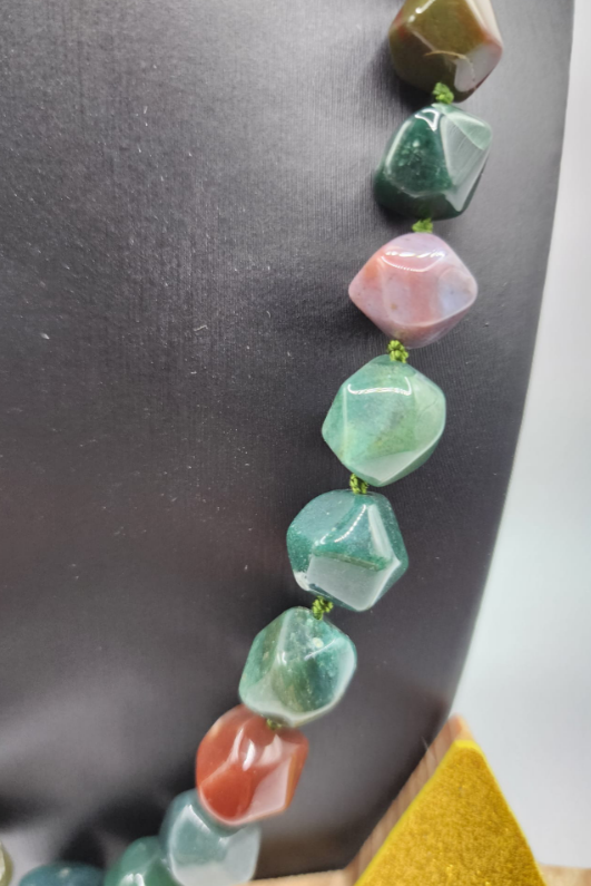 Collana con moschettone argentato, in pietre dure multicolore.