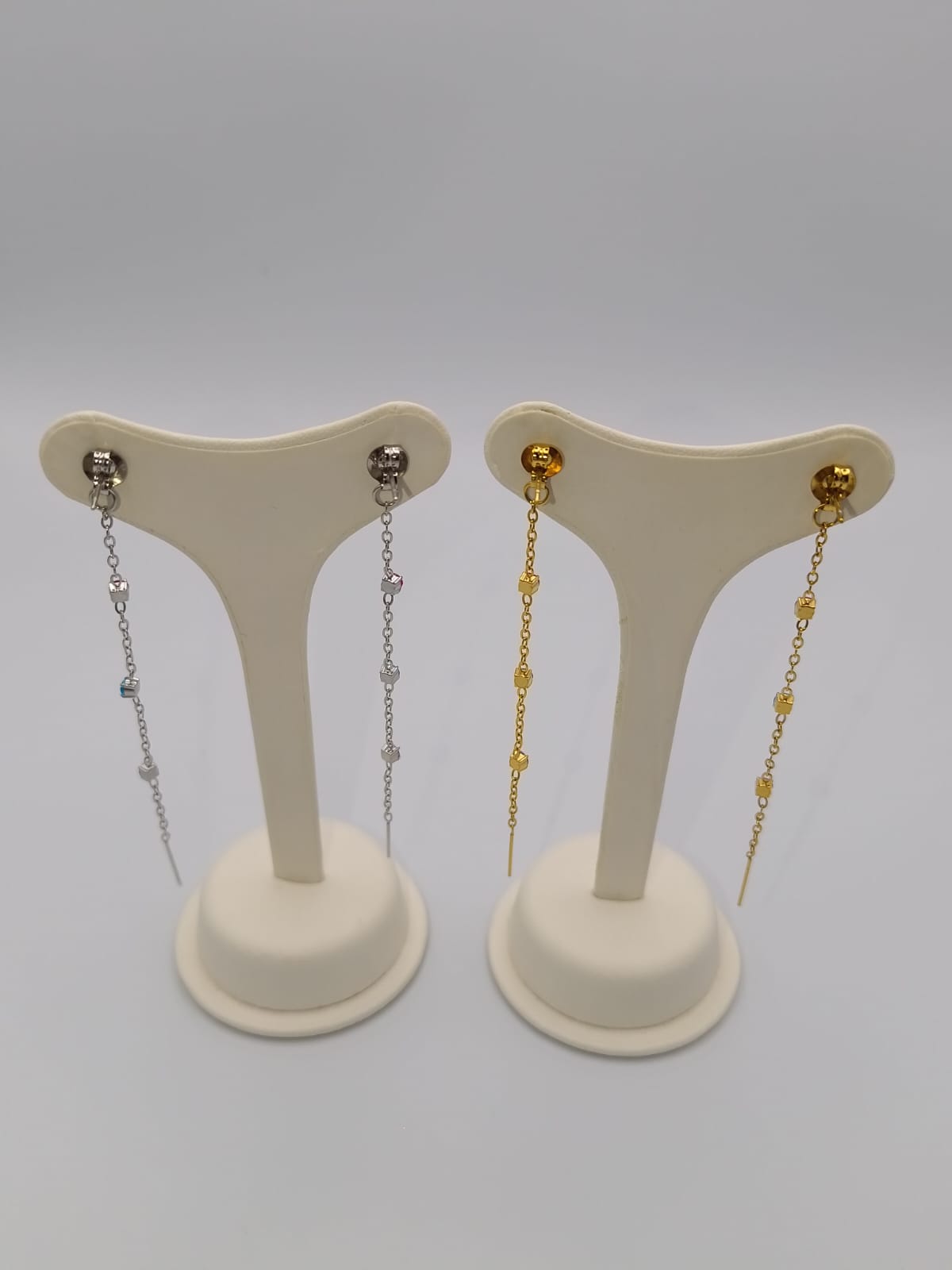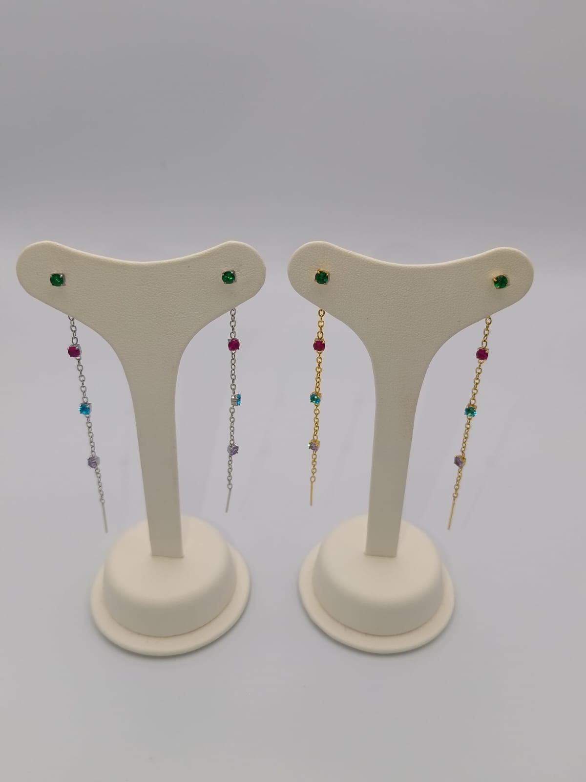 Coppia di orecchini conΒ punti luce multicolore.