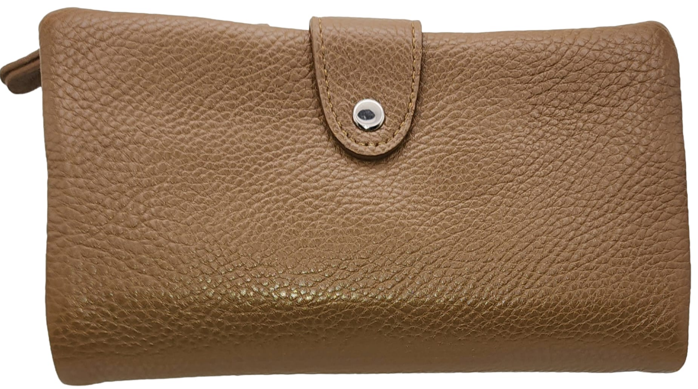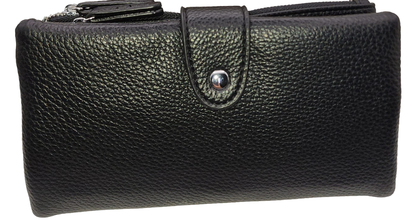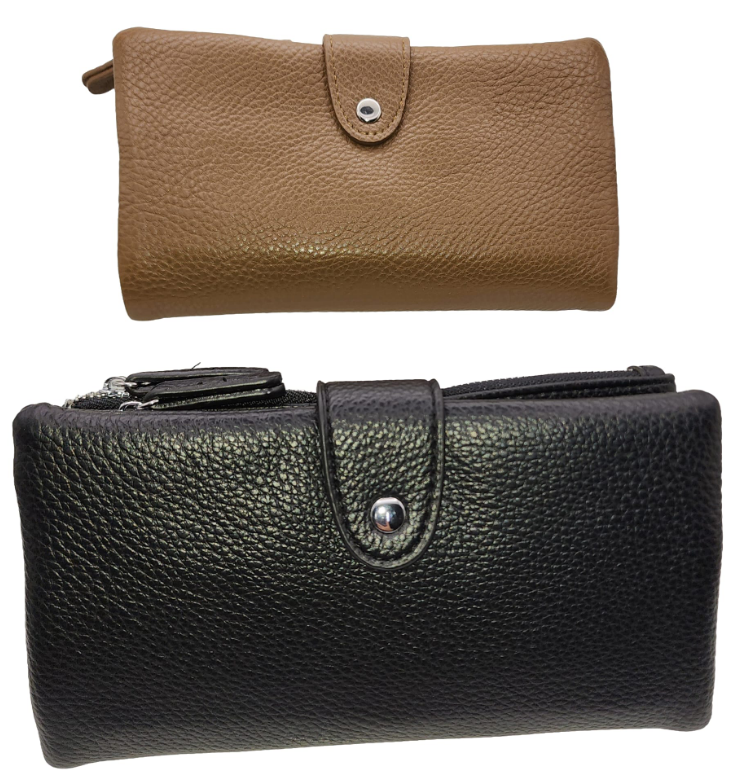 Portafoglio con apertura con bottone regolabile in due altezze.