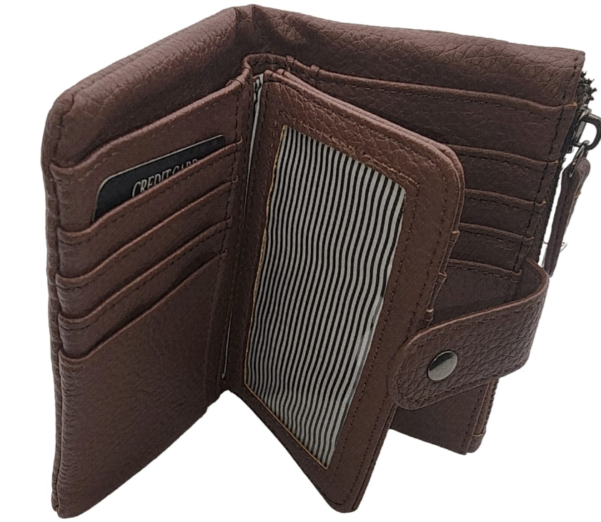 Tanti scomparti per tessere, diverse tasche di cui una per le fotografie e portamonete.