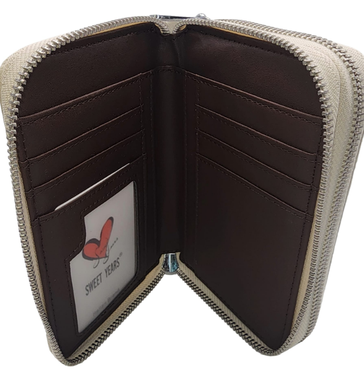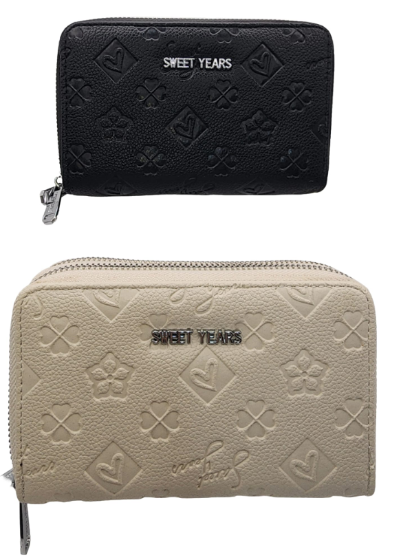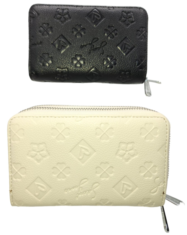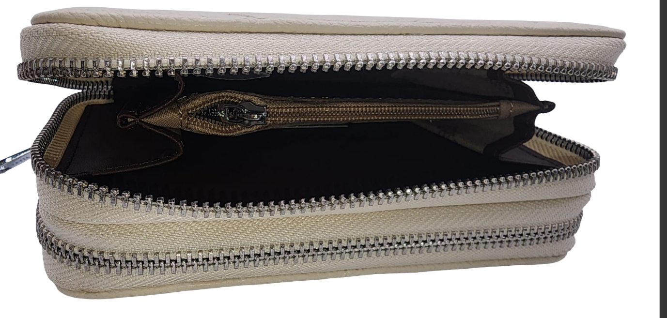 Portafoglio con 2Β cerniere, uno scomparto portatessere e contanti , uno scomparto per monete e altro.