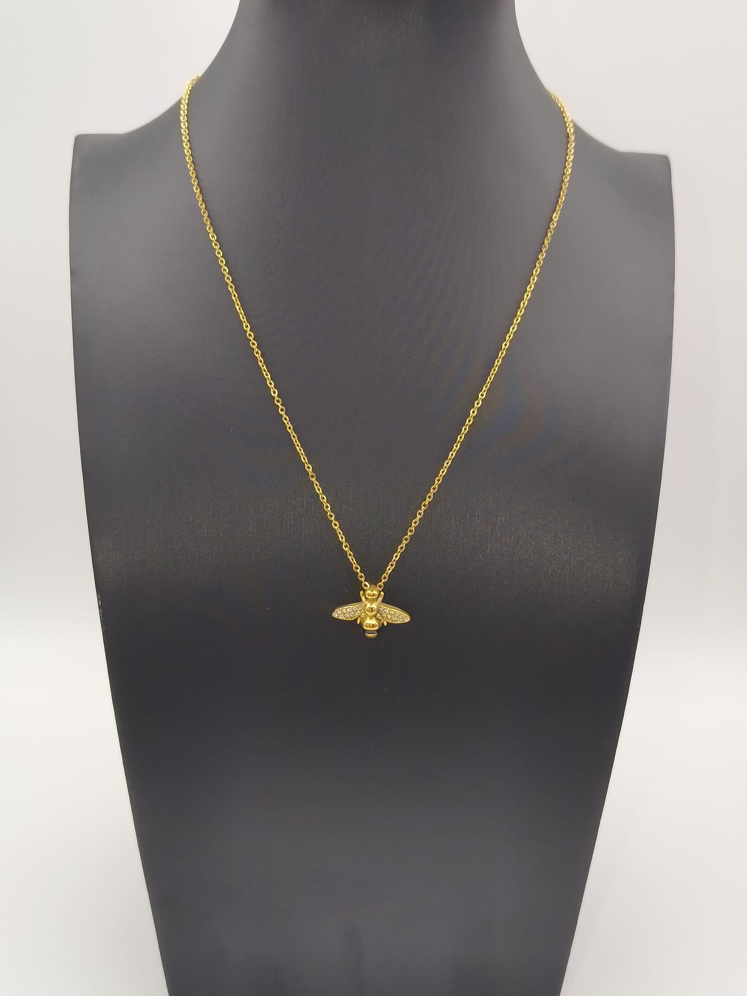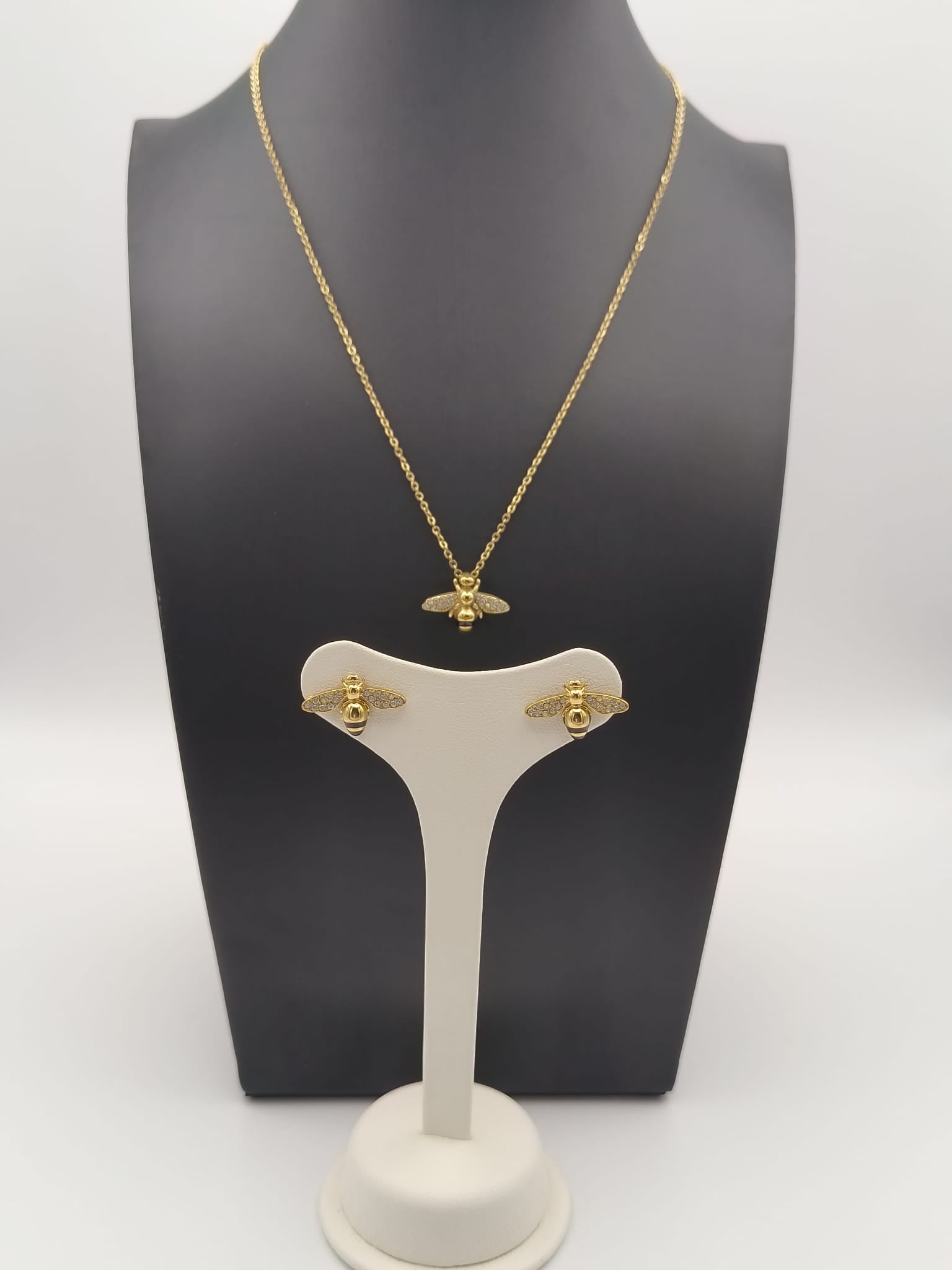 Β Una catenina con ciondolo ape con strass 10x17 mm e orecchini in coordinato.