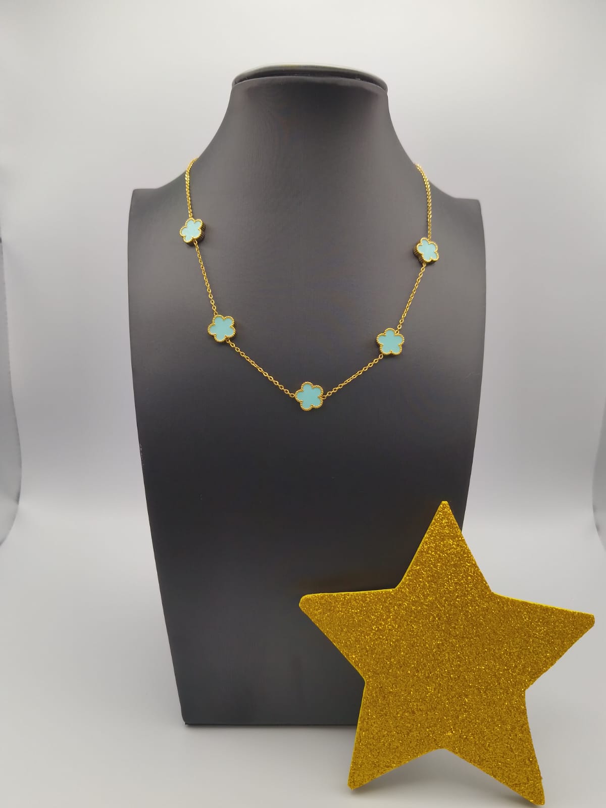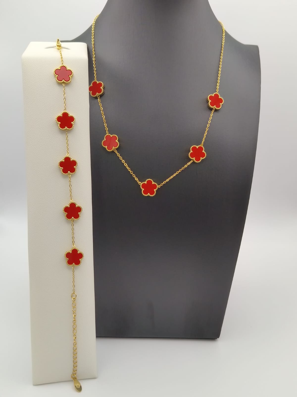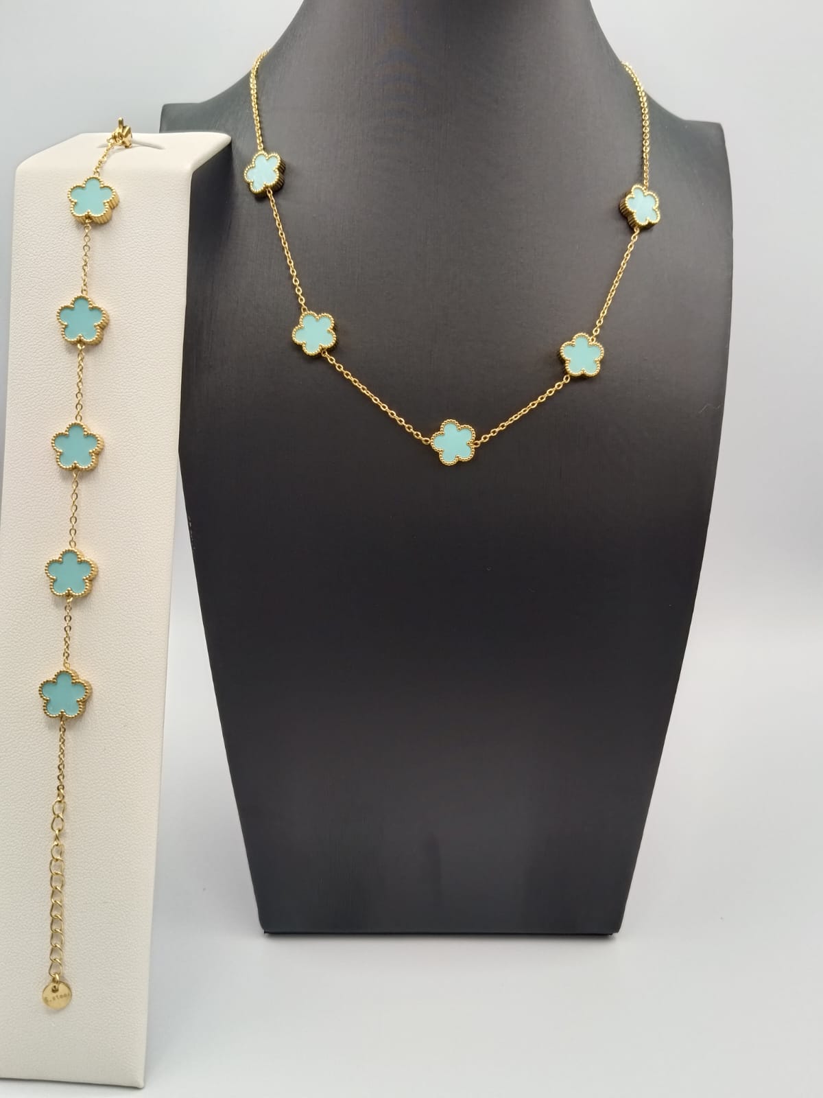 Collana e bracciale con delicati fioriΒ smaltati alternati da una catenina dorata.