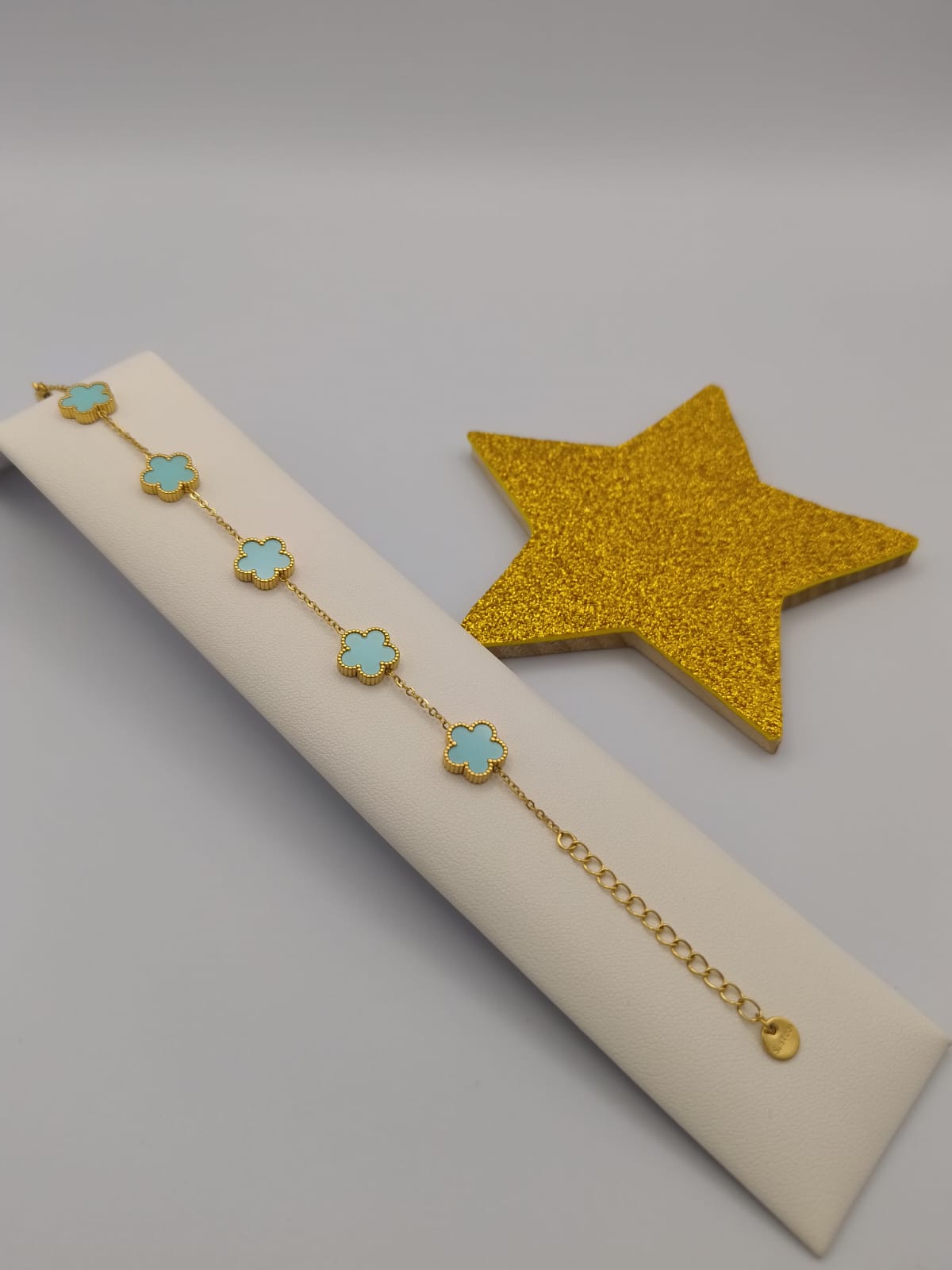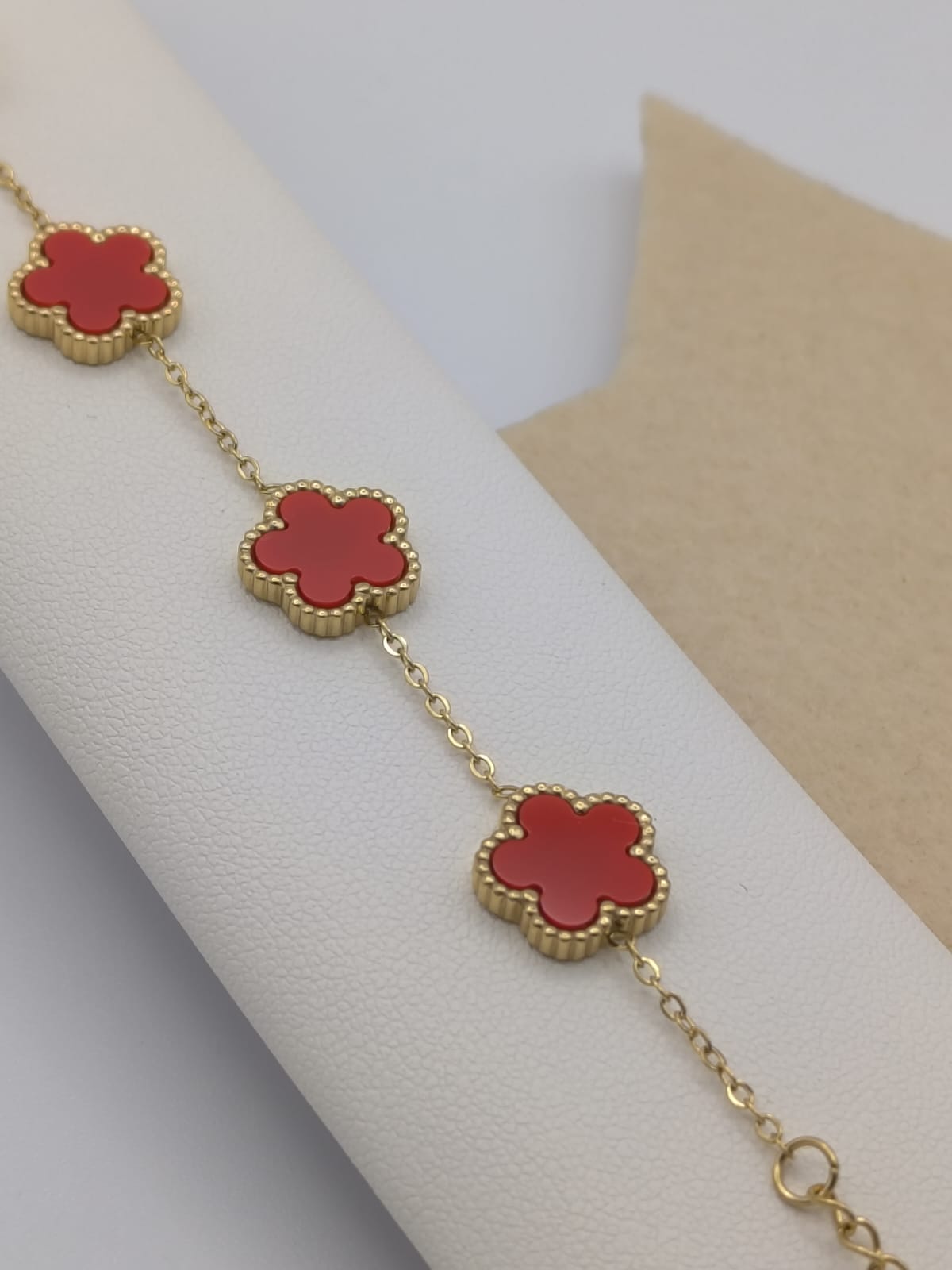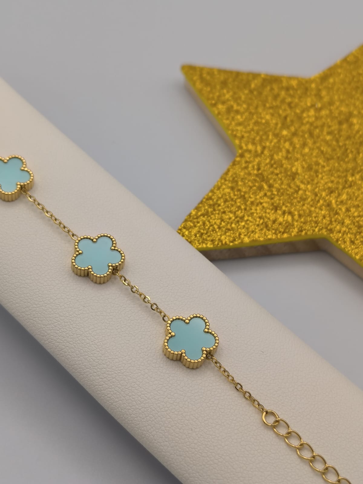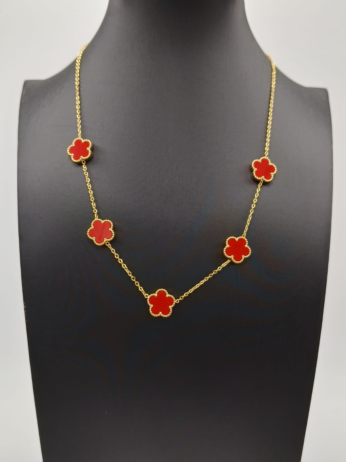 Collana e bracciale con delicati fioriΒ smaltati alternati da una catenina dorata.