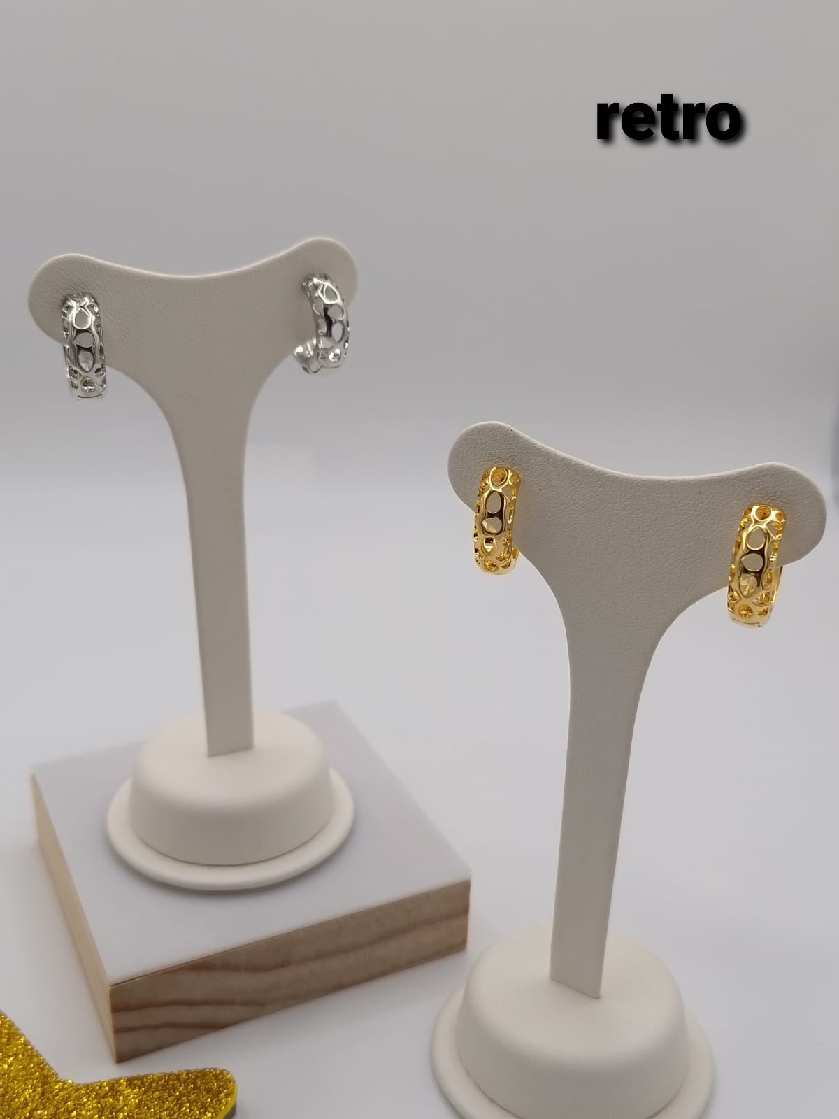 Oppure coppia orecchini a cerchioย con punti luce e lavorazione traforata (foto fronte/retro)