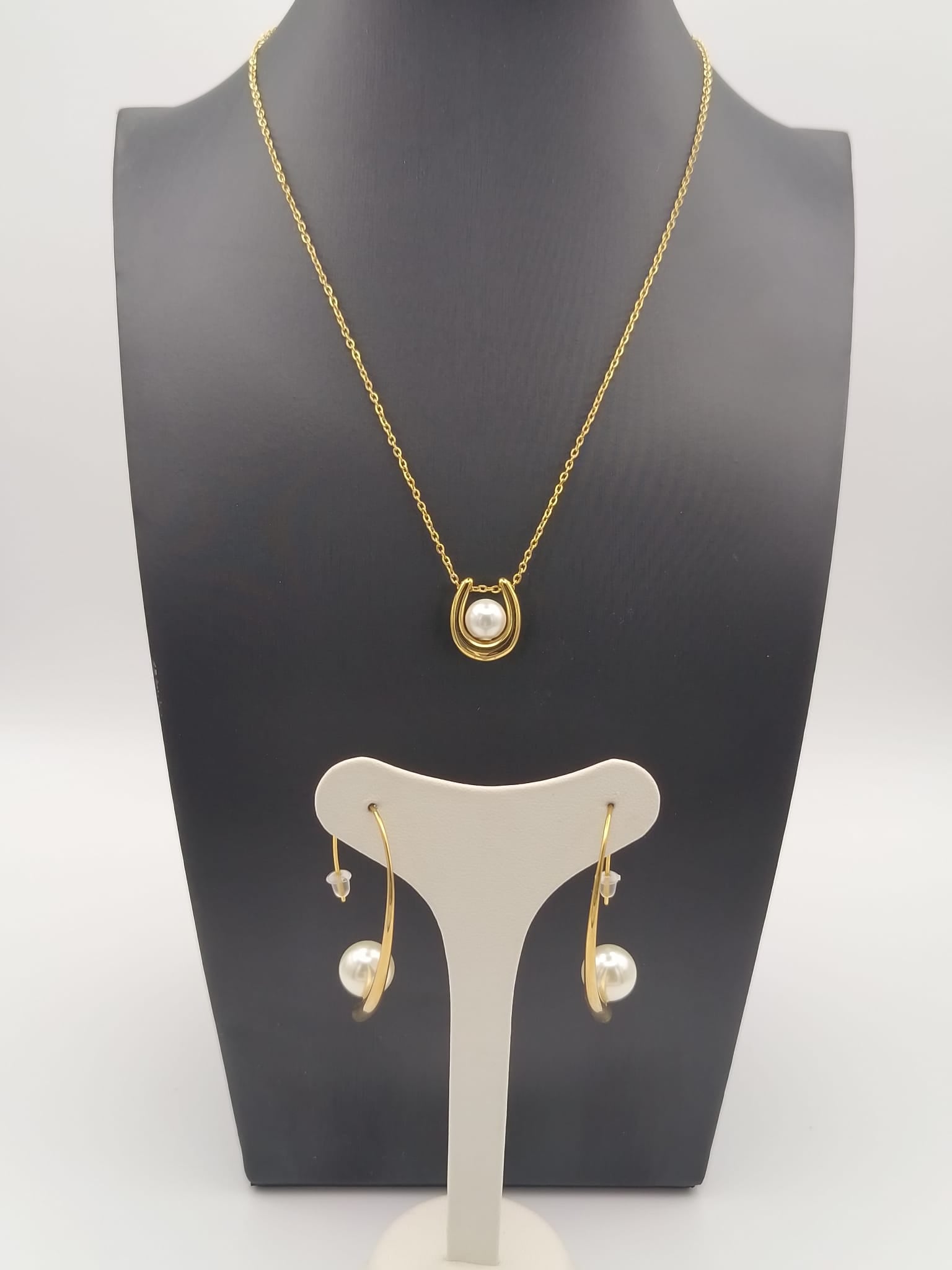 Cateninaย con ciondolo a mezzaluna e perla 7mm e orecchini in coordinatoย con perla 10mm