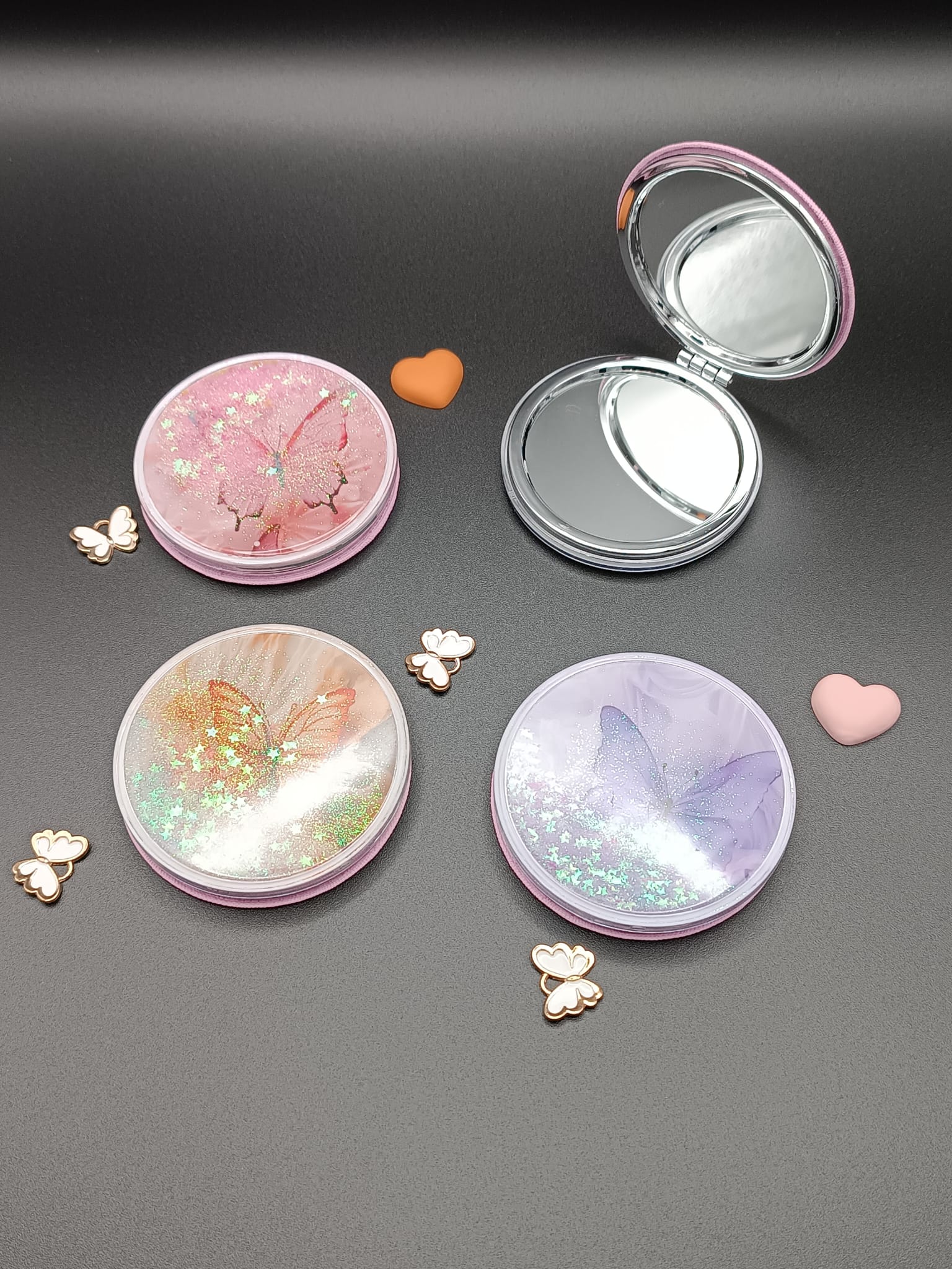 Specchietto da borsetta, apertura a scrigno con doppio specchio 1x/3x ingranditore.