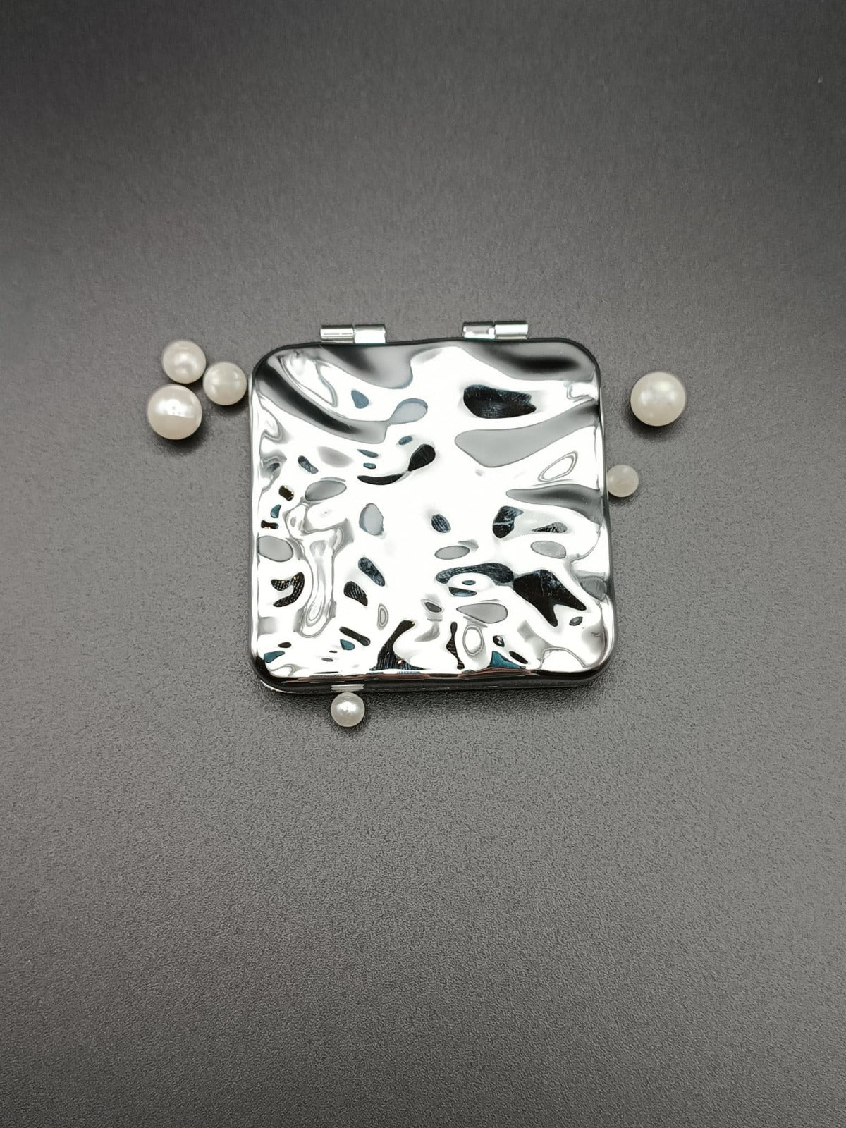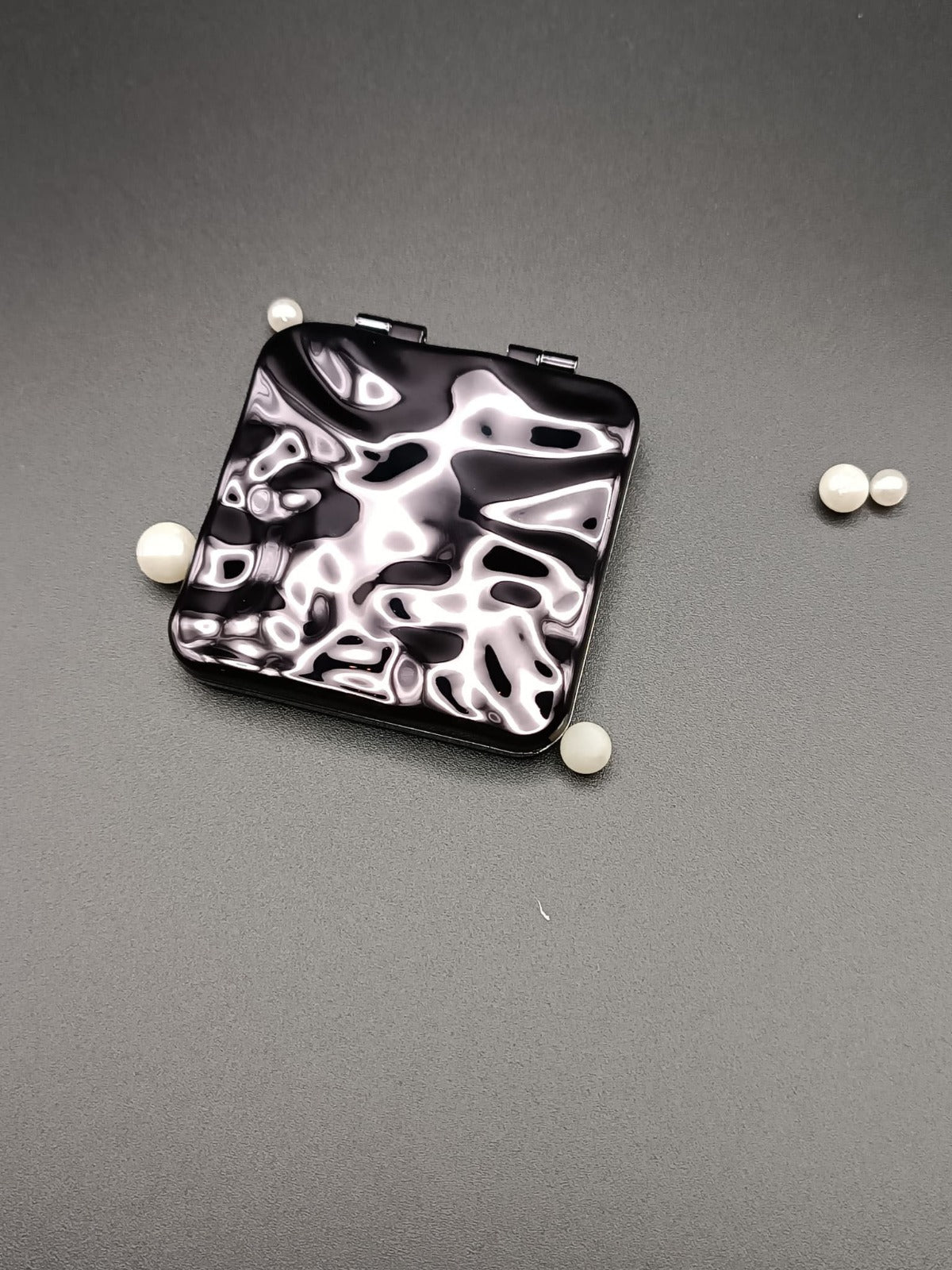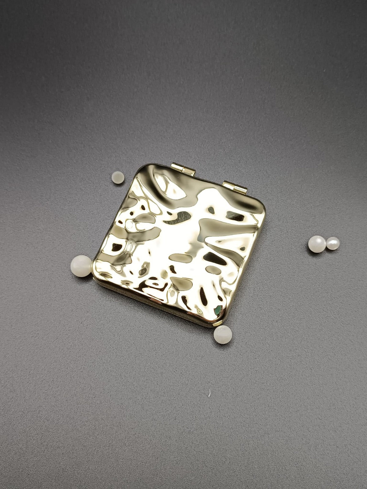 Specchietto da borsetta, apertura a scrigno con doppio specchio 1x/3x ingranditore.