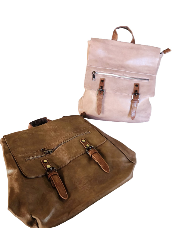 Disponibile in cuoio e rosa con dettagli marroni (fibbie e manico).